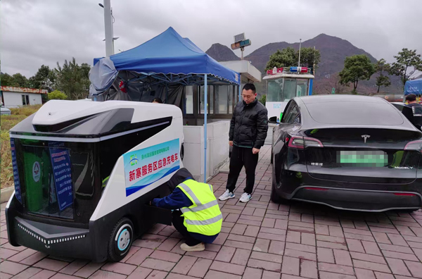 “应急充电设备仅需简单几步操作就能提供充电服务,而且移动充电、灵活充电方式有力推动实现了从‘人找桩’到‘桩找人’的转变。”大娄山服务区工作人员介绍道。
