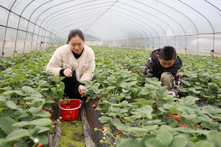 一颗颗草莓丰富了市民“果盘子”,也成为村民增收致富的“金钥匙”。在鲁班街道山水社区的山水草莓园,大棚里的草莓已进入开花、结果期,果农正抢抓时节开展除草、修枝等管护工作。草莓产业属于劳动密集型产业,从栽种、管护到采收都需要大量劳动力,这为周边群众创造更多在“家门口”就业的机会。“我在这里上班两年了,对我们年纪大的人来说,这份工作还是比较满意。”今年62岁的果农陈贵才说。