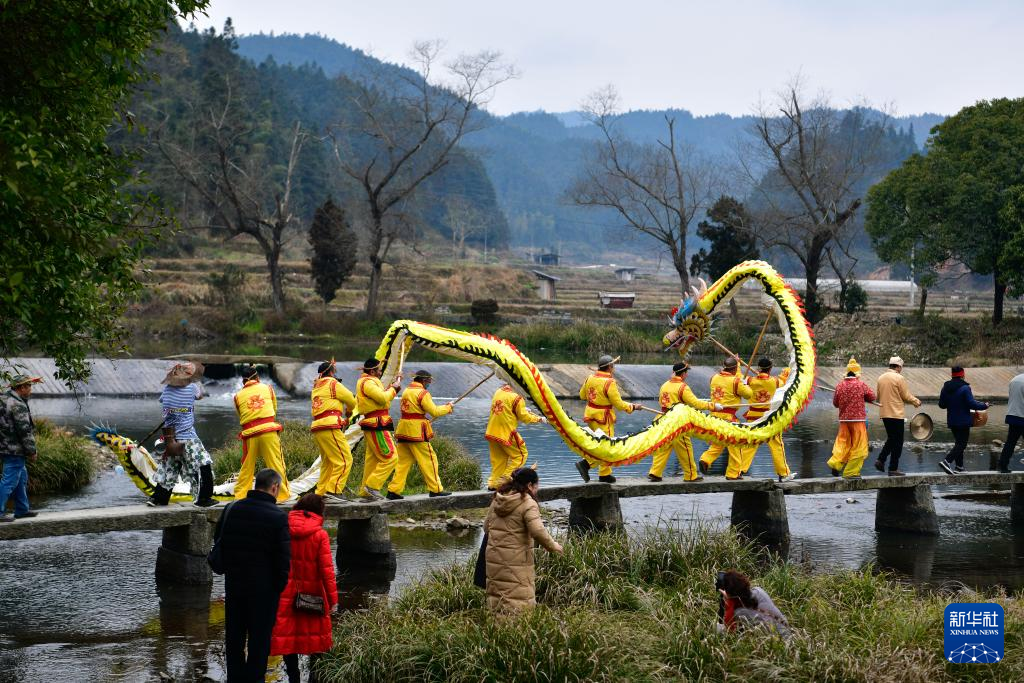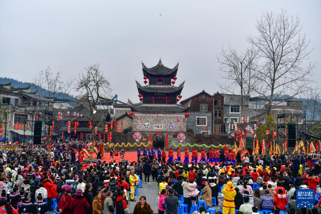这是2月11日拍摄的贵州锦屏隆里“村晚遇元宵·来隆里玩花脸龙”活动现场。新华社记者 杨文斌 摄