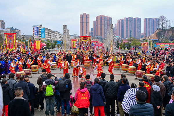 2月11日,贵州省岑巩县以“传承思州文化 欢度新春佳节”为主题,举办了民间斗鼓、花灯评比、非遗游演等系列丰富多彩的活动,欢欢喜喜闹元宵,为当地群众呈上一场震撼心灵的非遗盛宴,让传统的年味儿中弥漫着馥郁的文化芬芳。