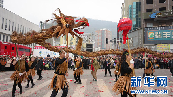 小朋友在贵州省德江县参加舞龙活动。新华网发(王显 摄)