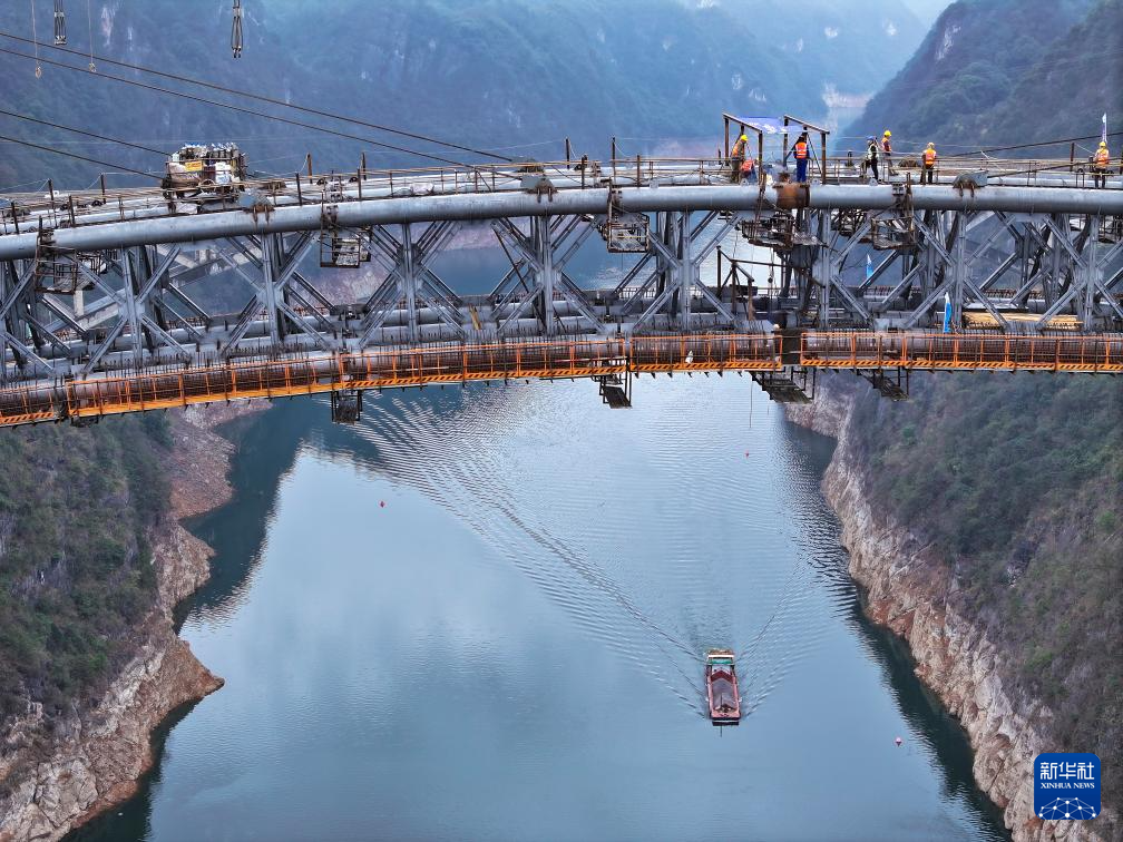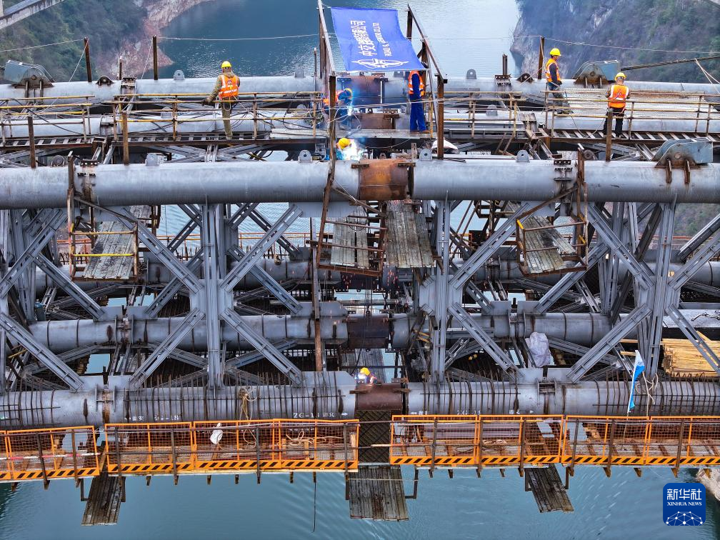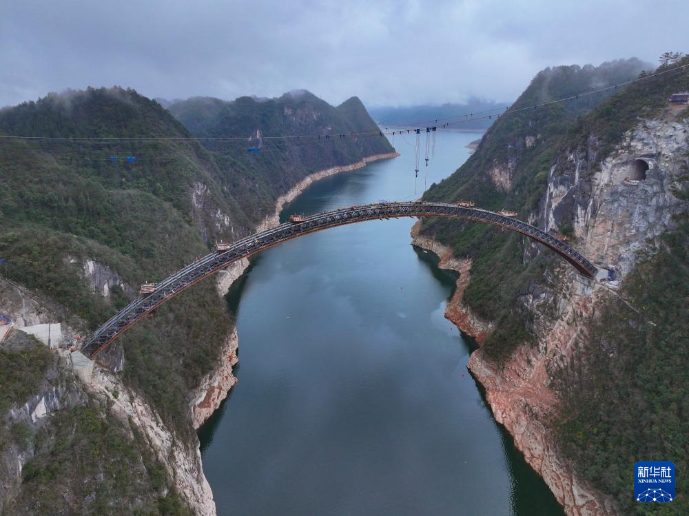 3月5日,乌江特大桥正在进行合龙。新华社记者 刘续 摄