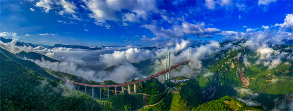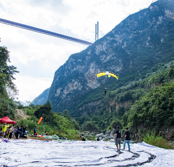 纵身一跃,滑翔伞轻盈舒展,18个国家的30余名外籍运动员翱翔在横跨云贵两省的北盘江大桥之上。云端处,他们尽情挑战极限运动,找寻一份渴盼已久的诗和远方。