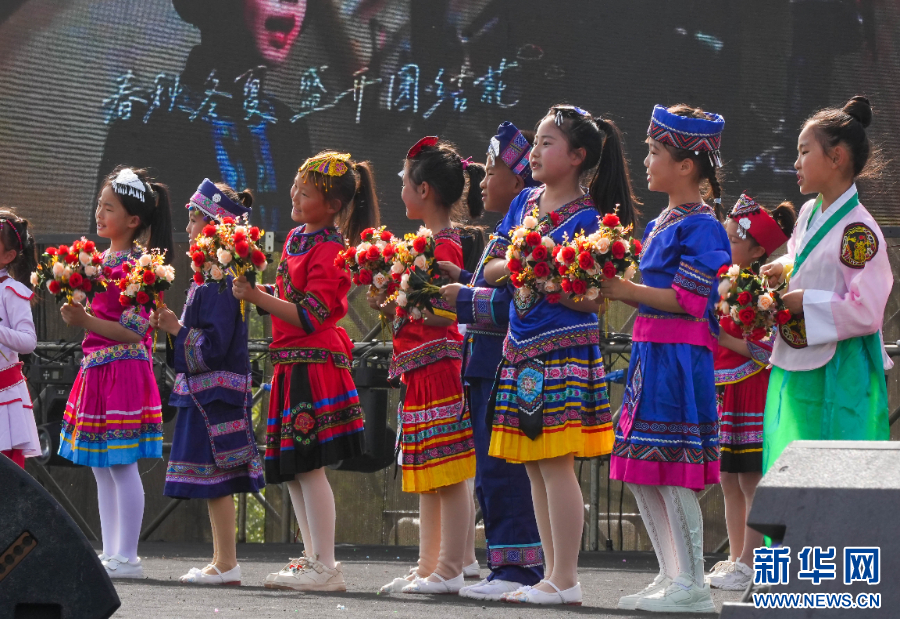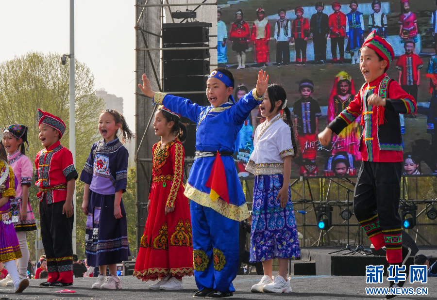 4月13日,小朋友们在“2025民族大联欢·春游”“白天玩”活动中带来童声合唱。新华网发(龙建睿 摄)