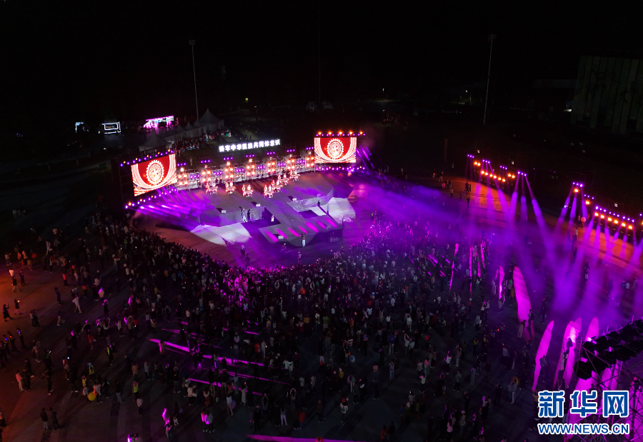 4月13日,演员在“2025民族大联欢·春游”活动中表演(无人机照片)。新华网发(龙建睿 摄)