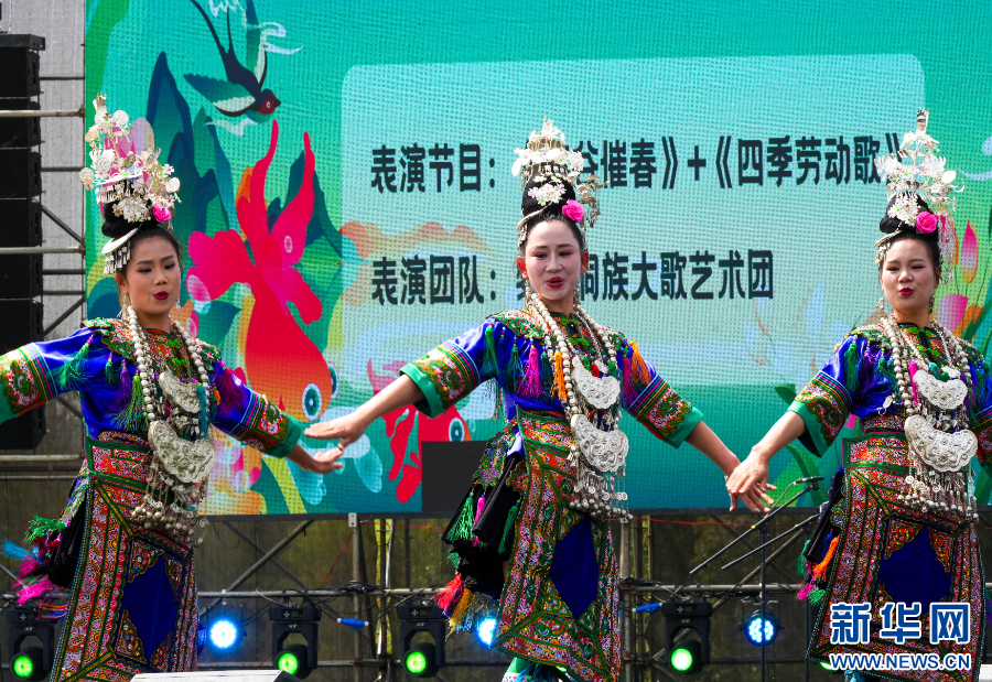 4月13日,演员在“2025民族大联欢·春游”“白天玩”活动中演唱侗族大歌。新华网发(龙建睿 摄)