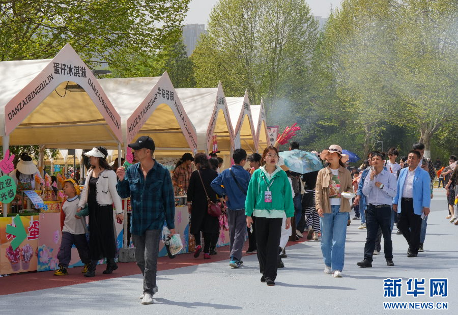4月13日,市民在“2025民族大联欢・春游”活动现场逛市集,赏非遗文创、品多样美食。新华网发(龙建睿 摄)