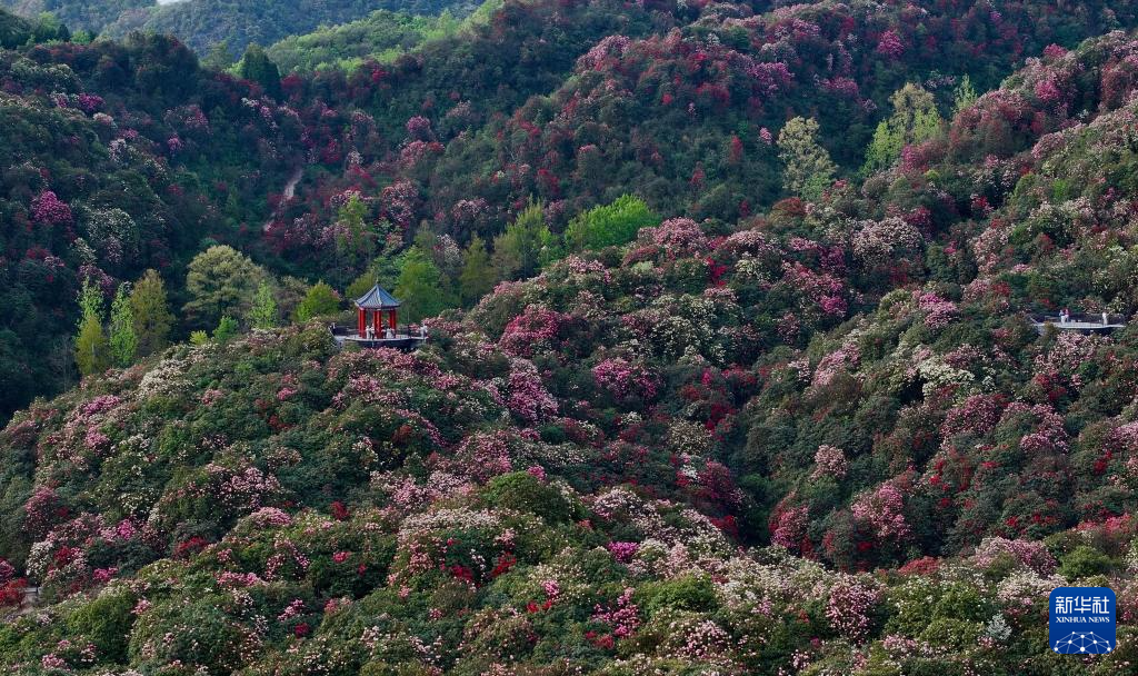 百里杜鹃景区的野生杜鹃花陆续迎来盛花期(4月15日摄)。新华社发(周云 摄)