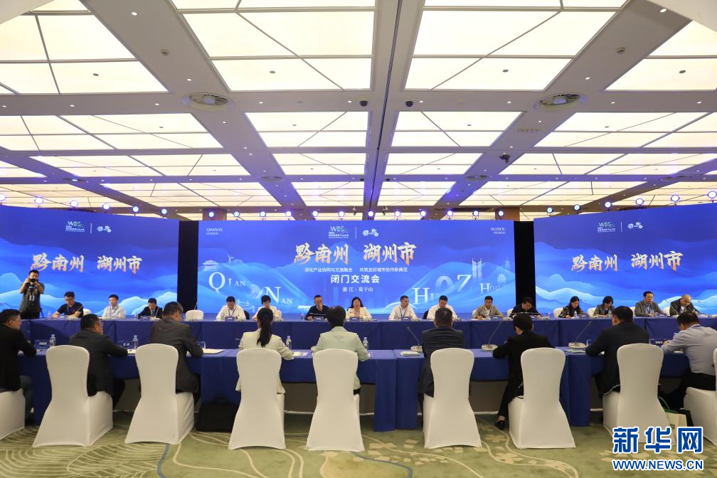 贵州黔南——西部云贵高原上的多彩明珠;浙江湖州——东部长三角区域的枢纽节点,以“深化产业协同与文旅融合,共筑友好城市协作新典范”为主题,举办闭门交流会。两地党政领导、企业代表齐聚一堂,共叙合作历程,共商发展机遇,共绘未来蓝图。