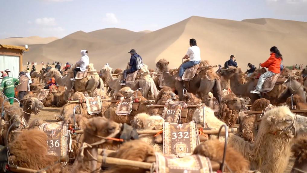 甘肃省敦煌市鸣沙山月牙泉景区迎来旅游旺季,为进一步提升游客体验,大漠乘驼数字化系统在景区正式上线运营。