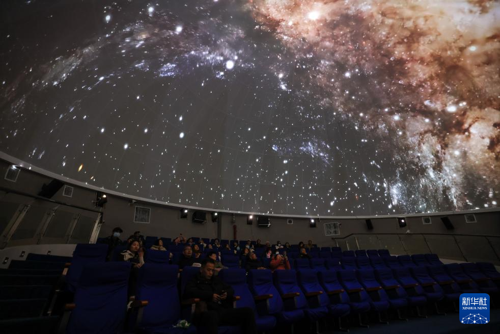 游客在贵州省平塘县“天文小镇”的天文体验馆内观看球幕电影(2025年2月18日摄)。新华社记者 欧东衢 摄