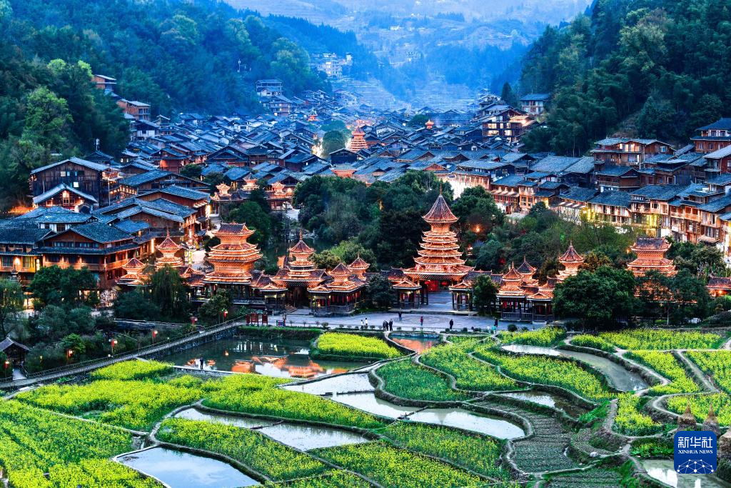 这是暮色中的贵州省黎平县肇兴侗寨(2025年3月17日摄)。新华社记者 杨文斌 摄