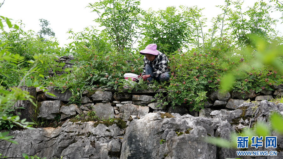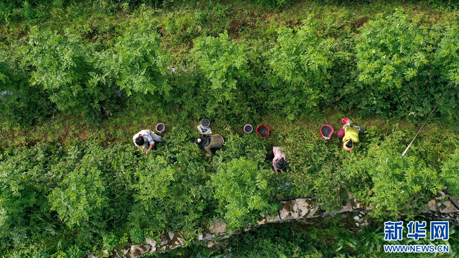 6月9日,村民在清镇市流长苗族乡羊坝村树莓基地采收树莓。新华网 周远钢 摄