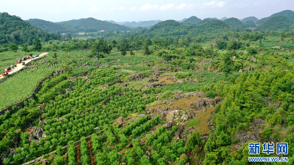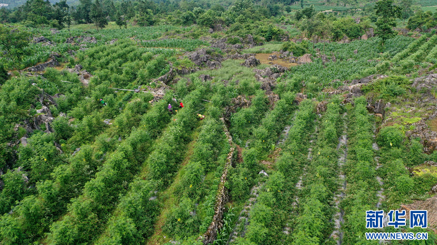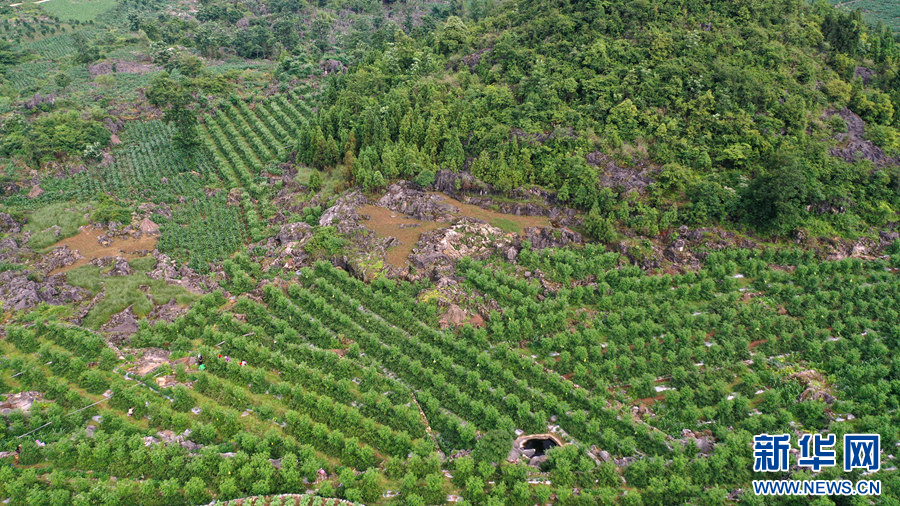 6月9日航拍的清镇市流长苗族乡羊坝村树莓基地。新华网 周远钢 摄