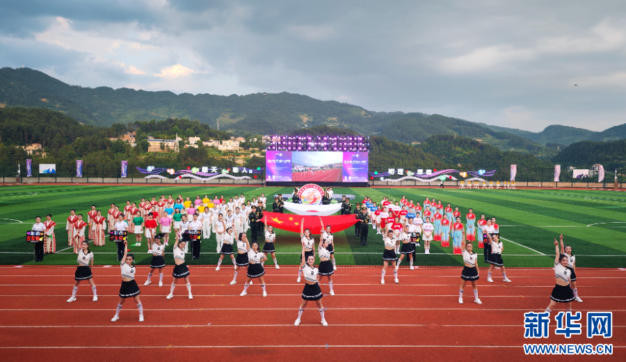 6月11日,航拍茅台职工运动会开幕式现场。新华网 卢志佳 摄
