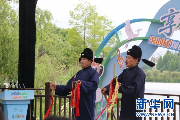 石阡县文化馆在现场表演国家非遗节目《说春》。新华网发(刘欧艺 摄)