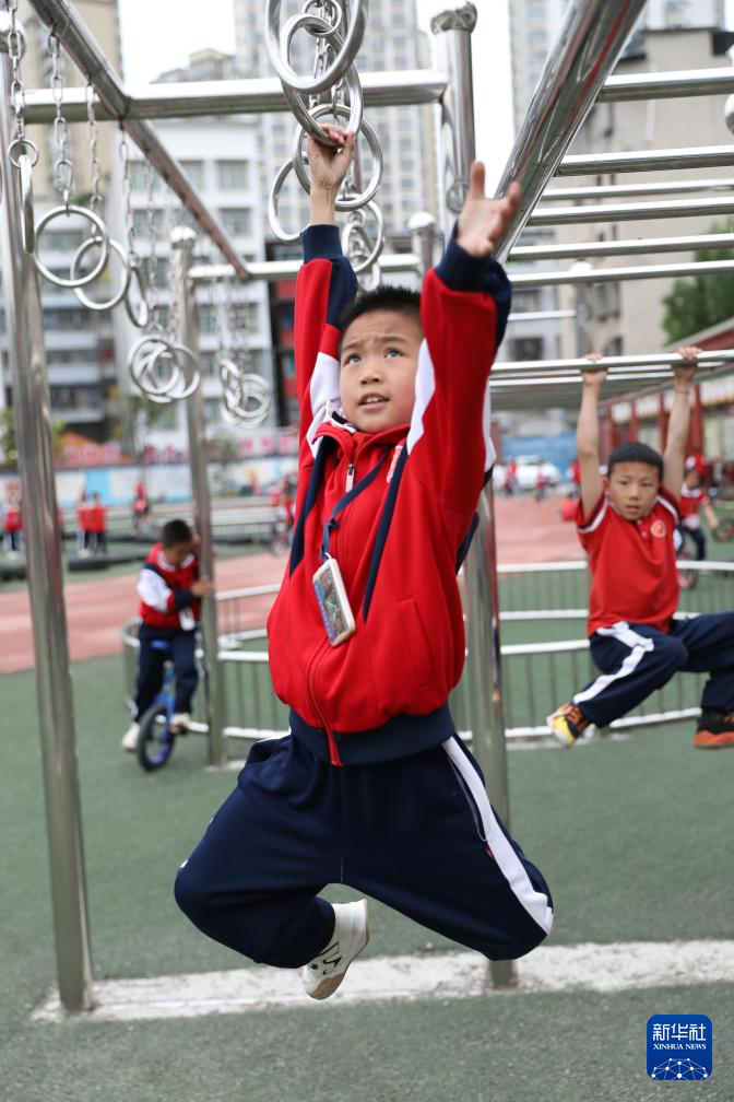 新华社贵阳7月9日电(记者郑明鸿)步入贵州省黄平县新州镇第二小学,就像是进入了一个体育乐园,吊环、秋千、滑滑梯、攀爬网、攀岩墙、篮球架、乒乓球台等10多种体育器材,布满了校园的各个角落。