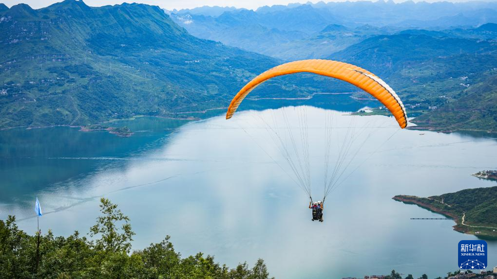 炎炎夏日,滑翔伞这一低空旅游项目成为了贵州省六盘水市众多游客的新选择。近年来,贵州省六盘水市六枝特区依托凉爽的气候资源和山地特色资源优势,积极打造牂牁江区域山地旅游升级版,体育产业融合助推旅游发展,进一步激发了山地体旅融合的消费活力。