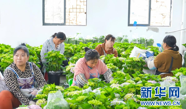 “土壤好,种苗也得好,热天不能打农药,还得随时关注病虫害,浇水时不能一个劲往根里灌,这样花才开得好,只见花朵不见叶子。”当地绣球花农杨文分享着种植经验。
