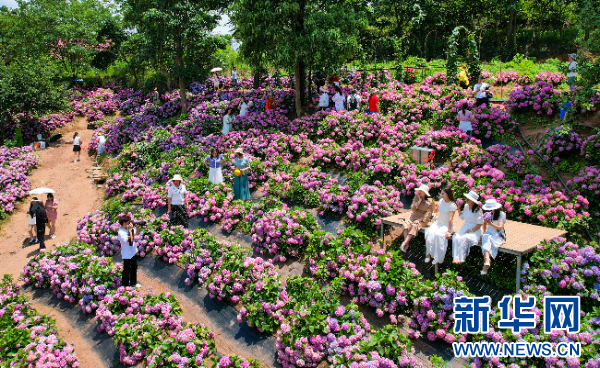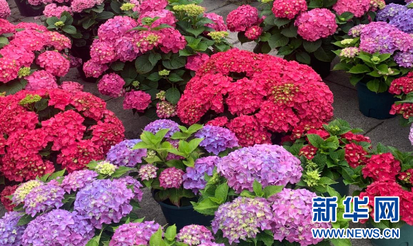 惠水涟江花海内种植的绣球花盆栽。新华网发(陈青阳 摄)