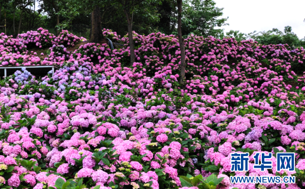 惠水县好花红村桔乡花海山体公园内绽放的绣球花。(惠水县融媒体中心供图)
