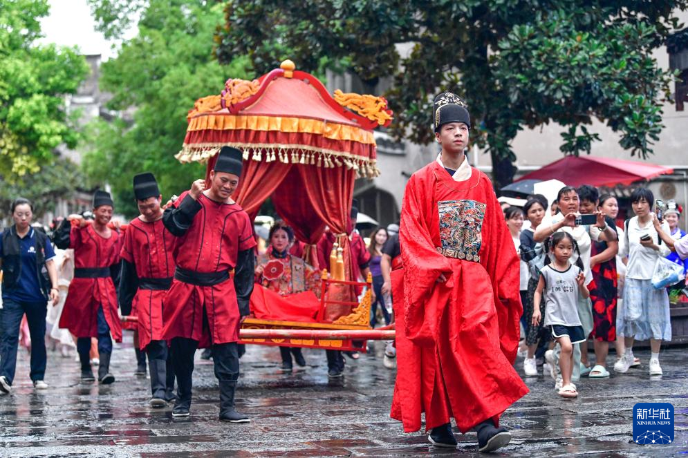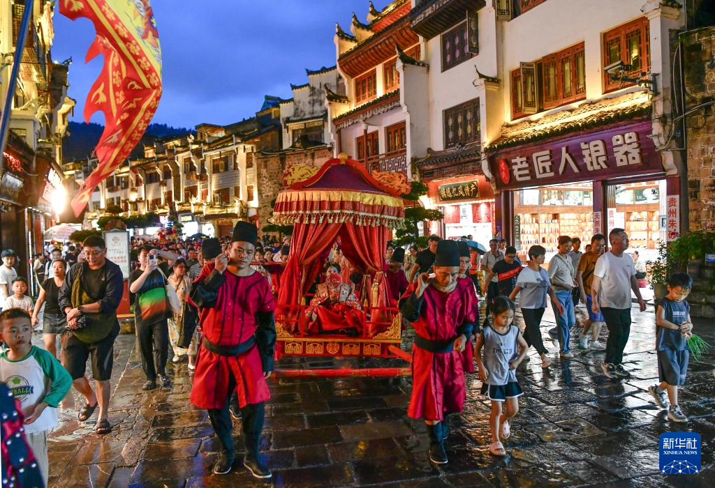 7月22日,当地群众在镇远古城参加“龙神嫁妹”民俗巡游展演。新华社记者 杨文斌 摄