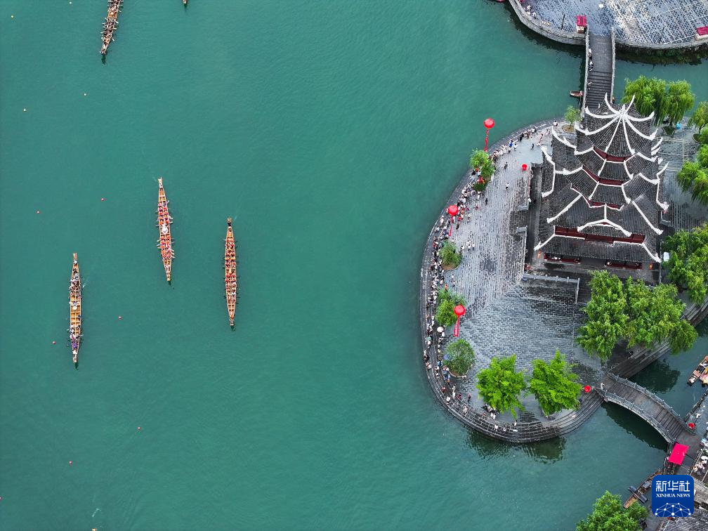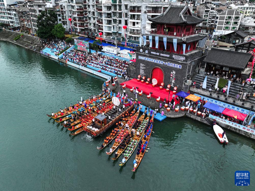 当日,2025年民体杯全国龙舟比赛在贵州省黔东南苗族侗族自治州镇远古城开幕。来自全国各地的10支龙舟队伍同场竞技,在镇远古城的㵲阳河上参加为期两天的水上竞速。赛事期间同时举办非遗展演、“龙神嫁妹”主题巡演等丰富多彩的活动。