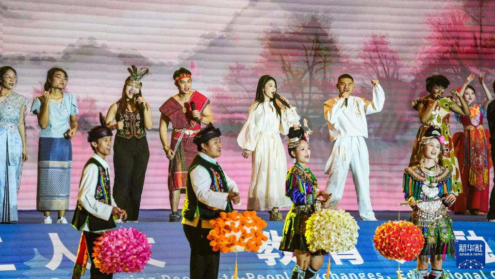7月26日,留学生代表和演员在2025中国—东盟教育交流周开幕式上演唱歌曲。