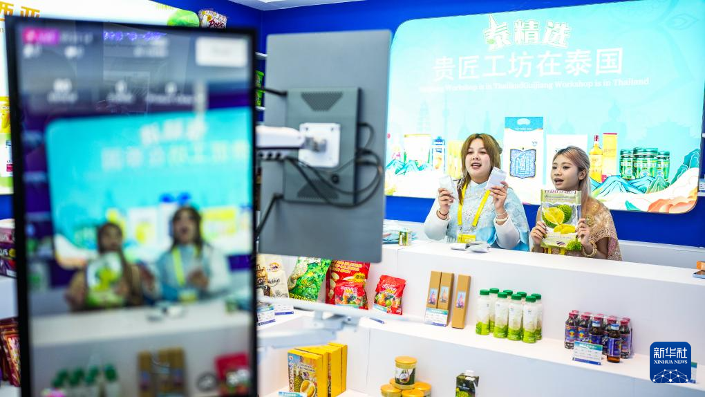 7月26日,留学生在跨境电商展区直播带货。新华社记者 陶亮 摄