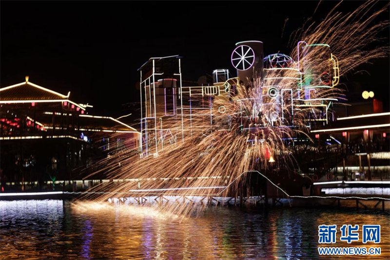 由混凝土生产工厂改造而来的游乐园推出的打铁花项目。(资料照片)
