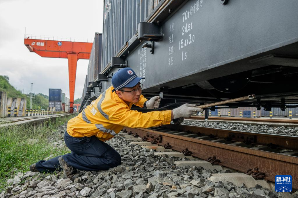 8月19日,工作人员在贵阳国际陆港都拉营站对贵州首趟多式联运“一单制”班列进行开行前检查。新华社发(邵健摄)