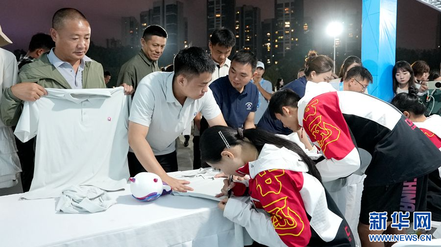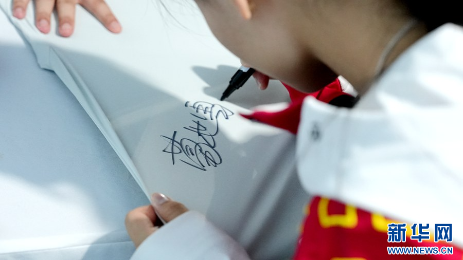 中国队运动员赛后在贵州纺织集团展台为市民签名。新华网 周远钢 摄