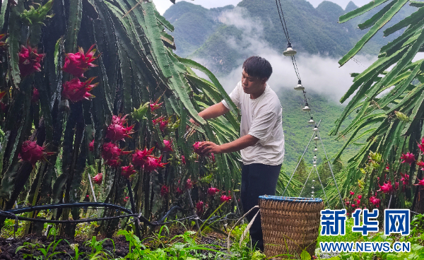 罗甸县果农在采收火龙果。(罗甸县融媒体中心供图)