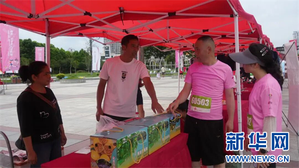 参赛选手在现场购买农产品。新华网发(赛事组委会供图)
