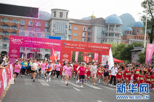 新华网贵阳9月16日电 9月14日,2025年贵州红·山水越野挑战赛(荔波站)暨2025年“她铁”粉色铁人三项挑战赛在贵州省荔波县举行,来自全国各地的4000余名参赛选手汇聚于此,在极限挑战的过程中,深刻感受贵州厚重的红色文化、美丽的自然风光与多彩的人文风情。