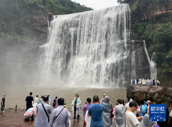 国庆假期,全国各地的游客来到这处贵州赤水境内最大的瀑布。站上观景台,悬崖顶端的水流从丹霞赤壁倾泻而下,水雾经阳光折射出绚烂彩虹,飞溅的水珠落在人们的脸颊,带来山间独有的清凉。