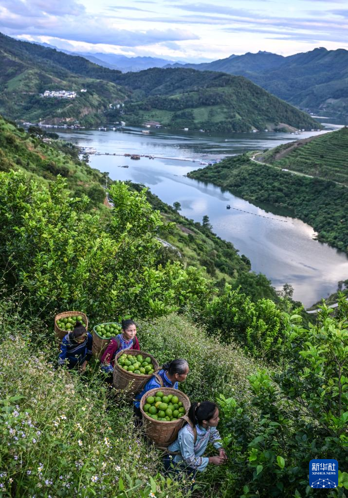 10月15日,村民在望谟县蔗香镇青柠檬基地采摘柠檬。新华社记者 杨文斌 摄