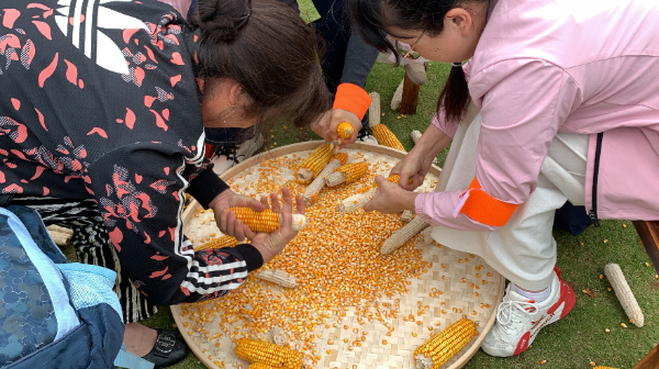 市民游客参与“玉粒归仓”游戏。新华网发(陈又华 摄)