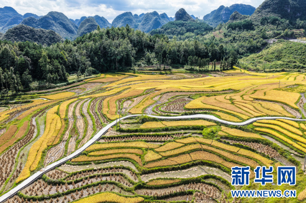 近日,贵州省黔南布依族苗族自治州长顺县12万亩水稻喜获丰收。新华社记者 陶亮 摄