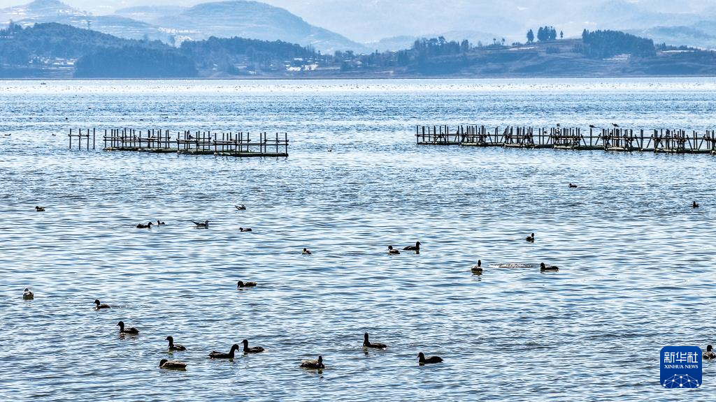 12月12日在贵州草海国家级自然保护区拍摄的越冬候鸟。新华社记者 陶亮 摄