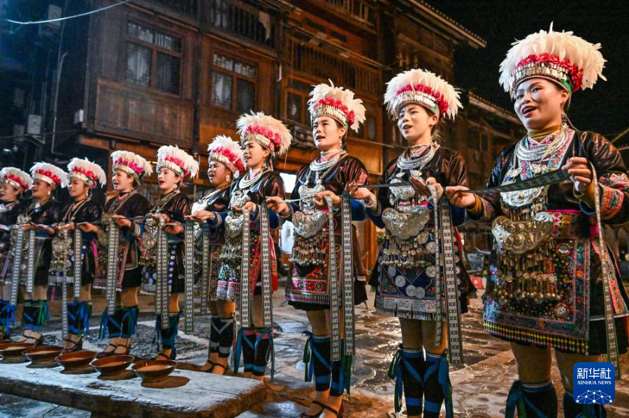 贵州省黎平县肇兴侗寨的村民在给游客表演节目(12月19日摄)。新华社记者 杨文斌 摄