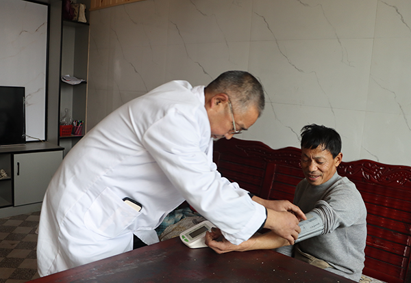他还是三个时代农村医疗变迁的见证者。1995至2005年,他靠着“老三样”(听诊器、血压计、体温表)走村串寨,药箱里常备着手电筒和雨衣;2005至2015年,卫生室通了电,添置了医疗设备、消毒设备,医疗环境逐步改善;2015至2025年,实现了电子健康档案、医保即时结报,村民在家门口就能享受便捷服务。他亲历并推动了农村医疗从“缺医少药”到“便捷优质”的时代跨越。