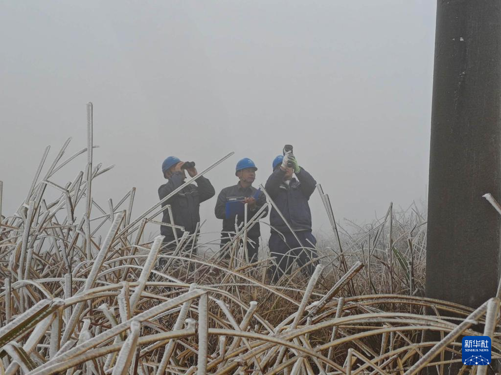 1月20日,南方电网贵阳息烽供电局工作人员开展低温天气下的线路巡检。(受访者供图)