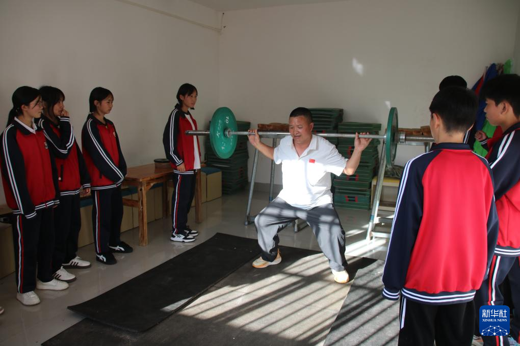 王斌在指导学生练习深蹲。新华社记者 郑明鸿 摄