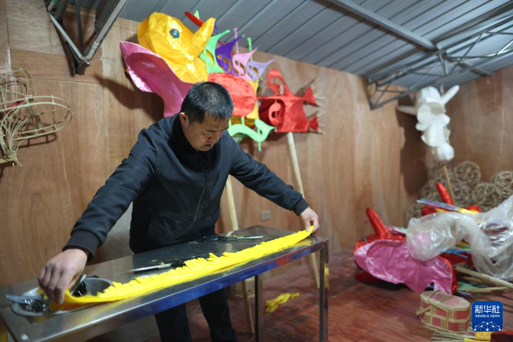代鑫在制作毛龙的组成部分“八方灯”(1月27日摄)。新华社记者 刘续 摄