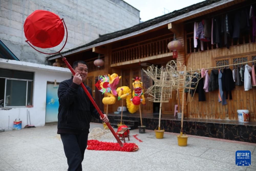 代鑫在查看一条已经制作完成的毛龙(1月27日摄)。新华社记者 刘续 摄