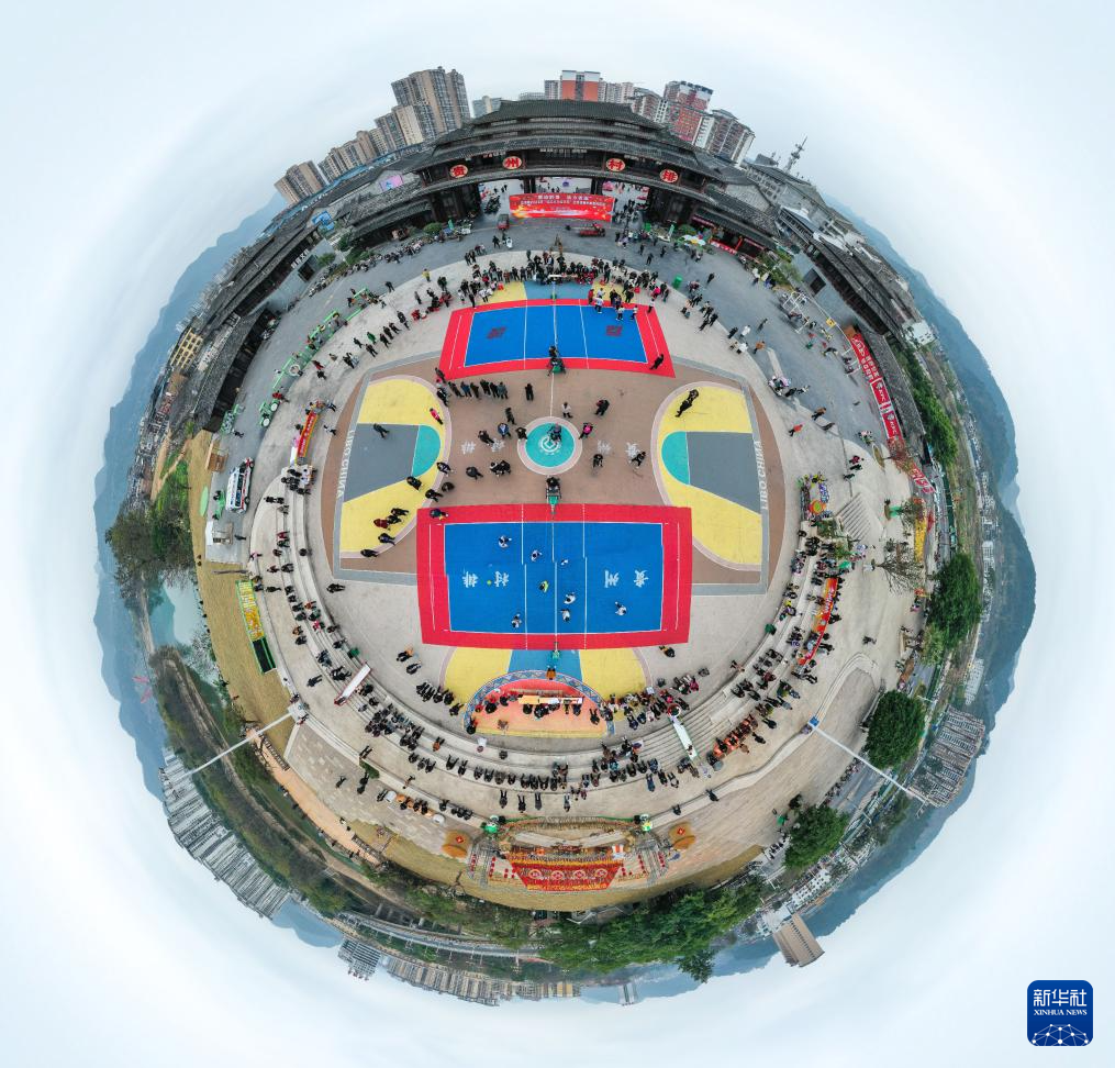 这是2月21日拍摄的“村排”比赛现场(无人机全景照片)。新华社记者 杨文斌 摄