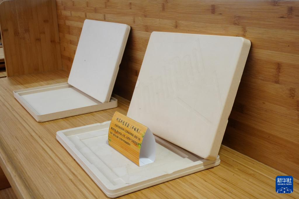 这是国家赤水竹产业示范园区“以竹代塑”产品展厅展示的竹浆模塑笔记本电脑包装盒(2025年5月25日摄)。新华社发(赤水市融媒体中心供图)