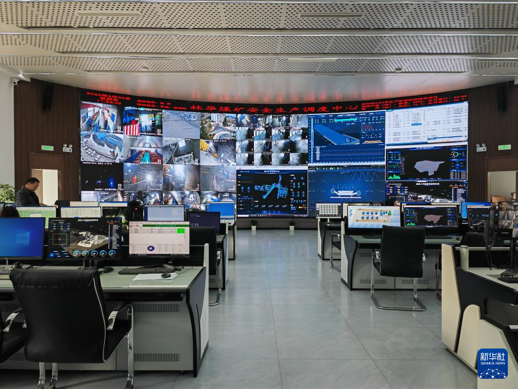 在林华煤矿安全生产调度中心,各类设备的运行状况一目了然。新华社记者施钱贵 摄