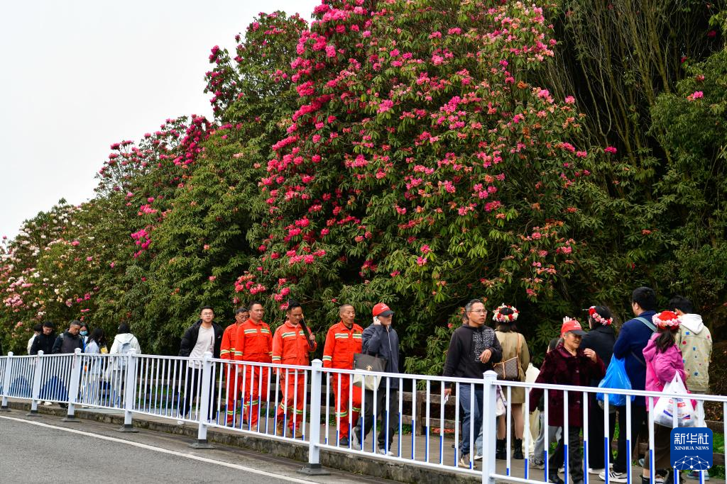 游客在贵州百里杜鹃管理区金坡景区赏花观光(4月1日摄)。新华社记者 杨文斌 摄